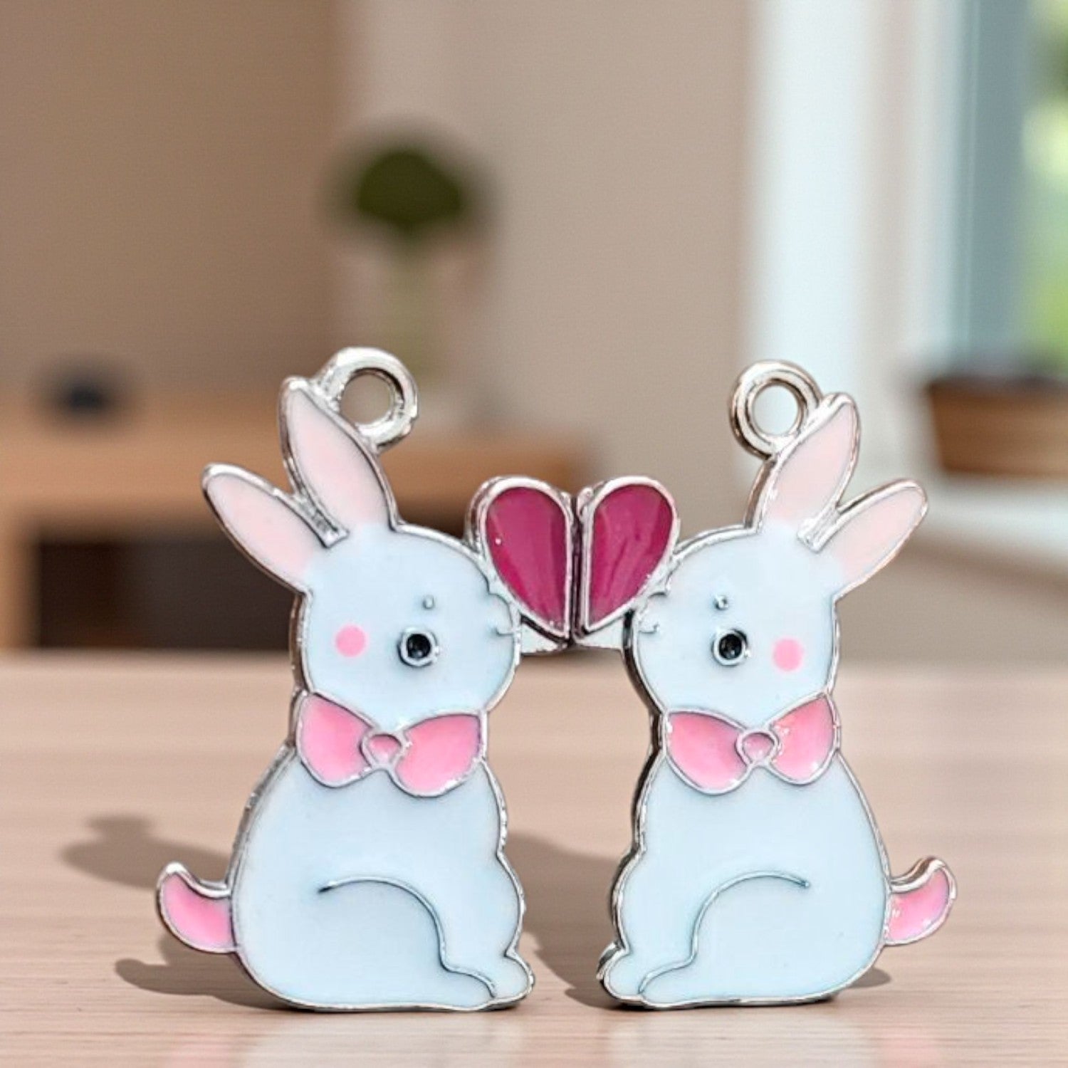 Cute Rabbit Couple Magnetic Charm - 1 Pc