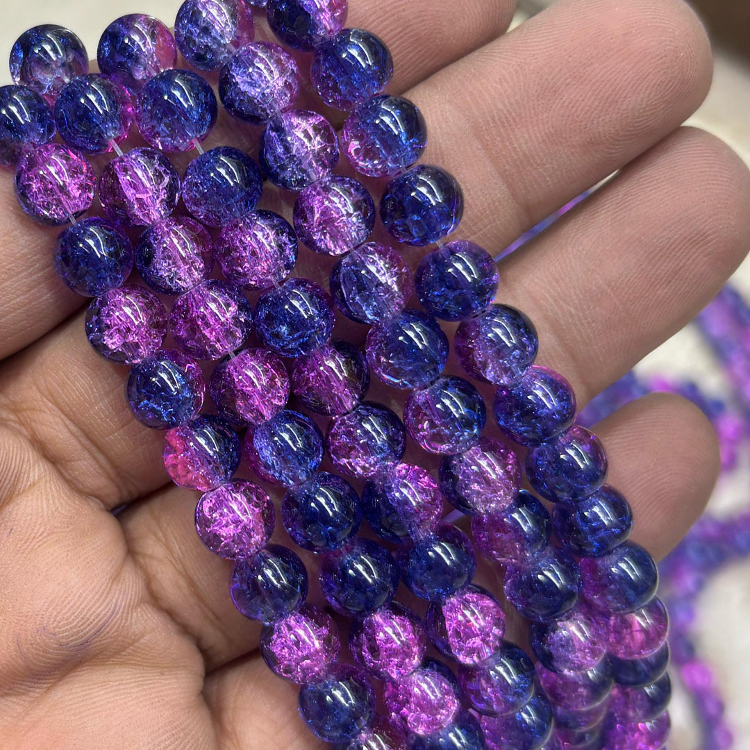 Royal Blue Pink Multi Crackle Beads 8mm